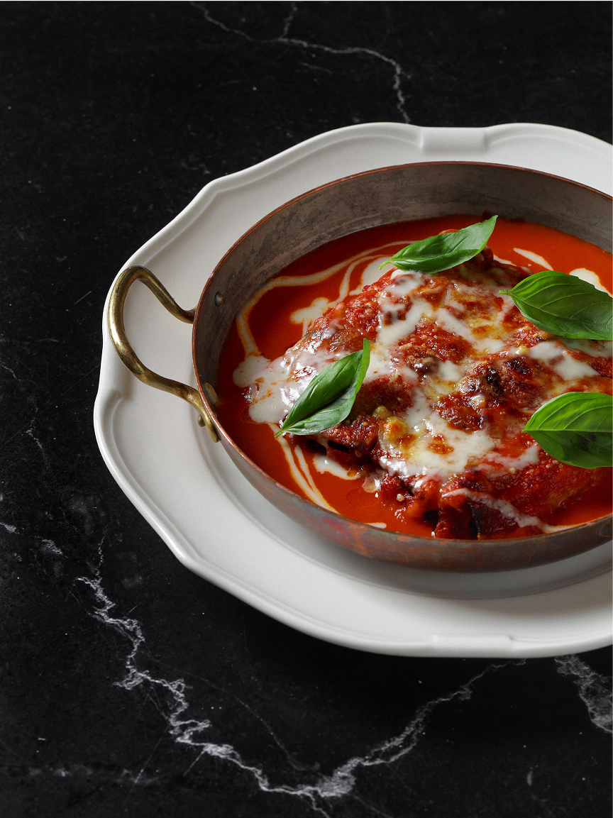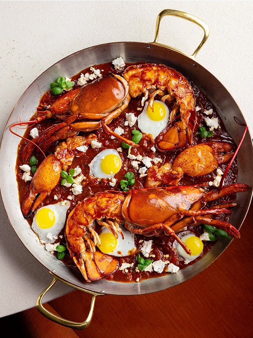 Медная сковорода с лужением и латунными ручками в ресторане Oltremare