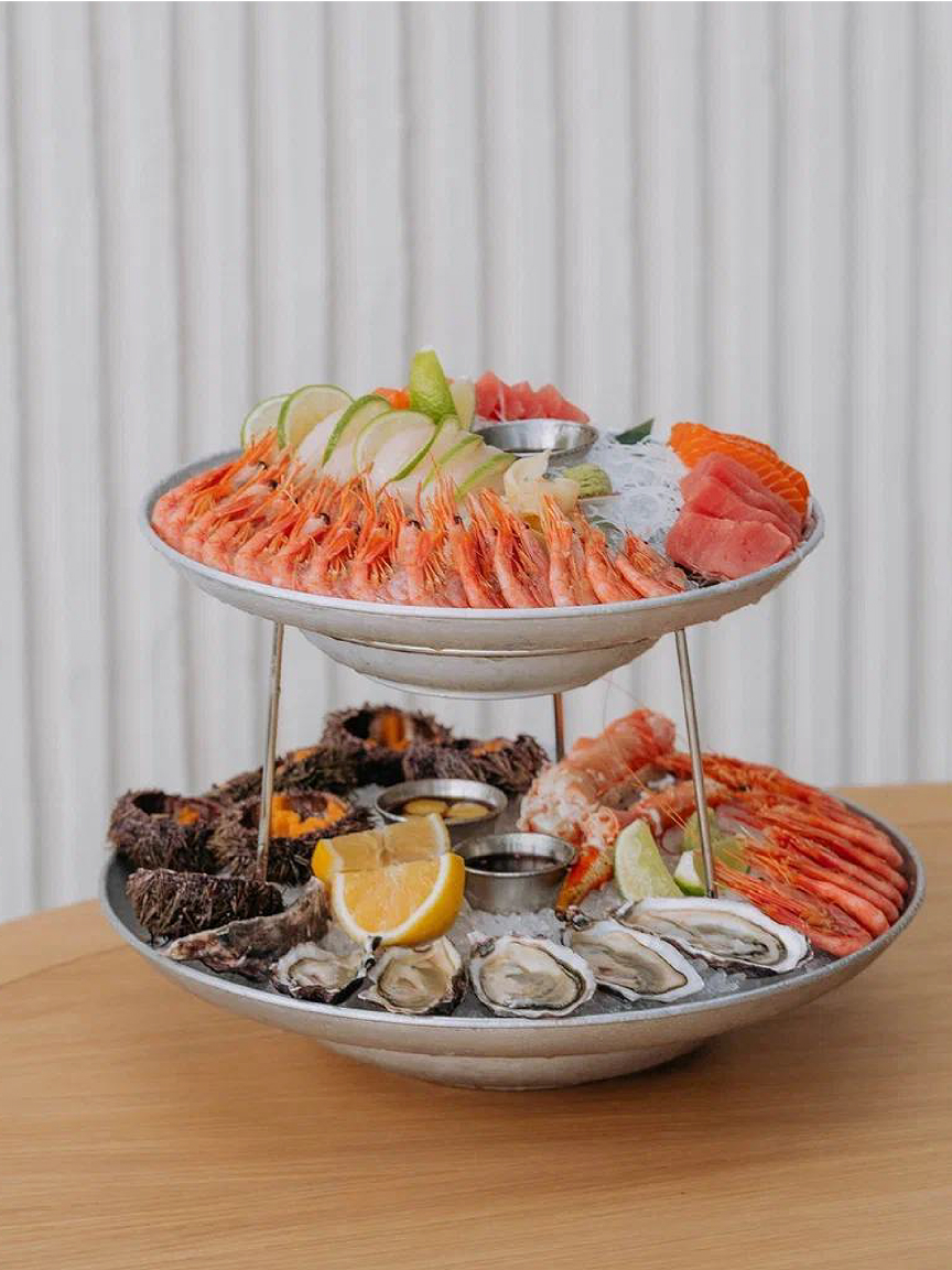 Алюминиевое двухъярусное блюдо для морепродуктов в ресторане «Клёво»