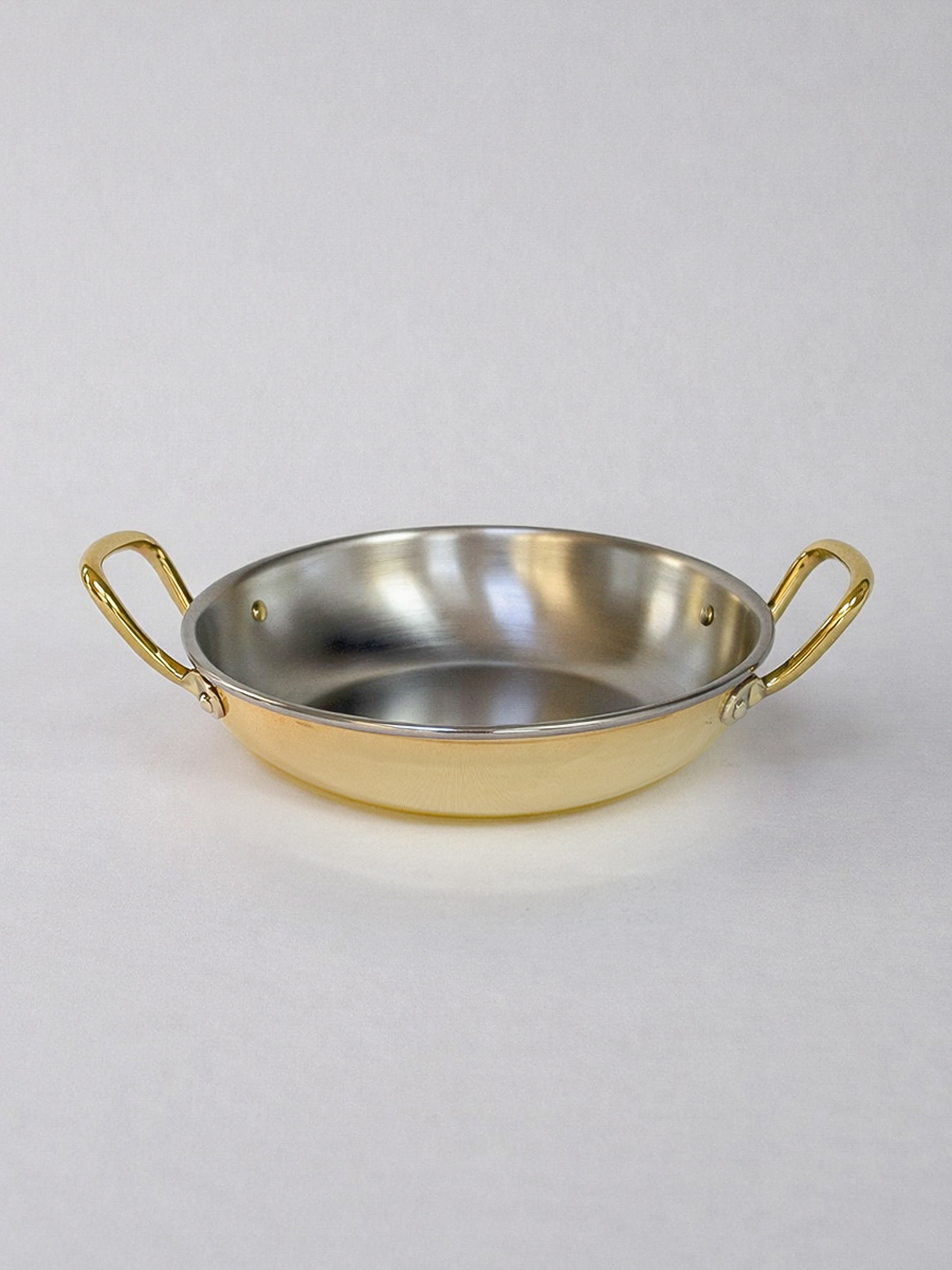 Gibco Сковорода 14х3,5 см с двумя ручками “Бином”, латунная с нержавеющей сталью, полированная